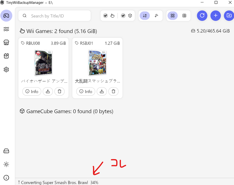 • GCとWiiのゲームイメージは別々に保存しないとダメ